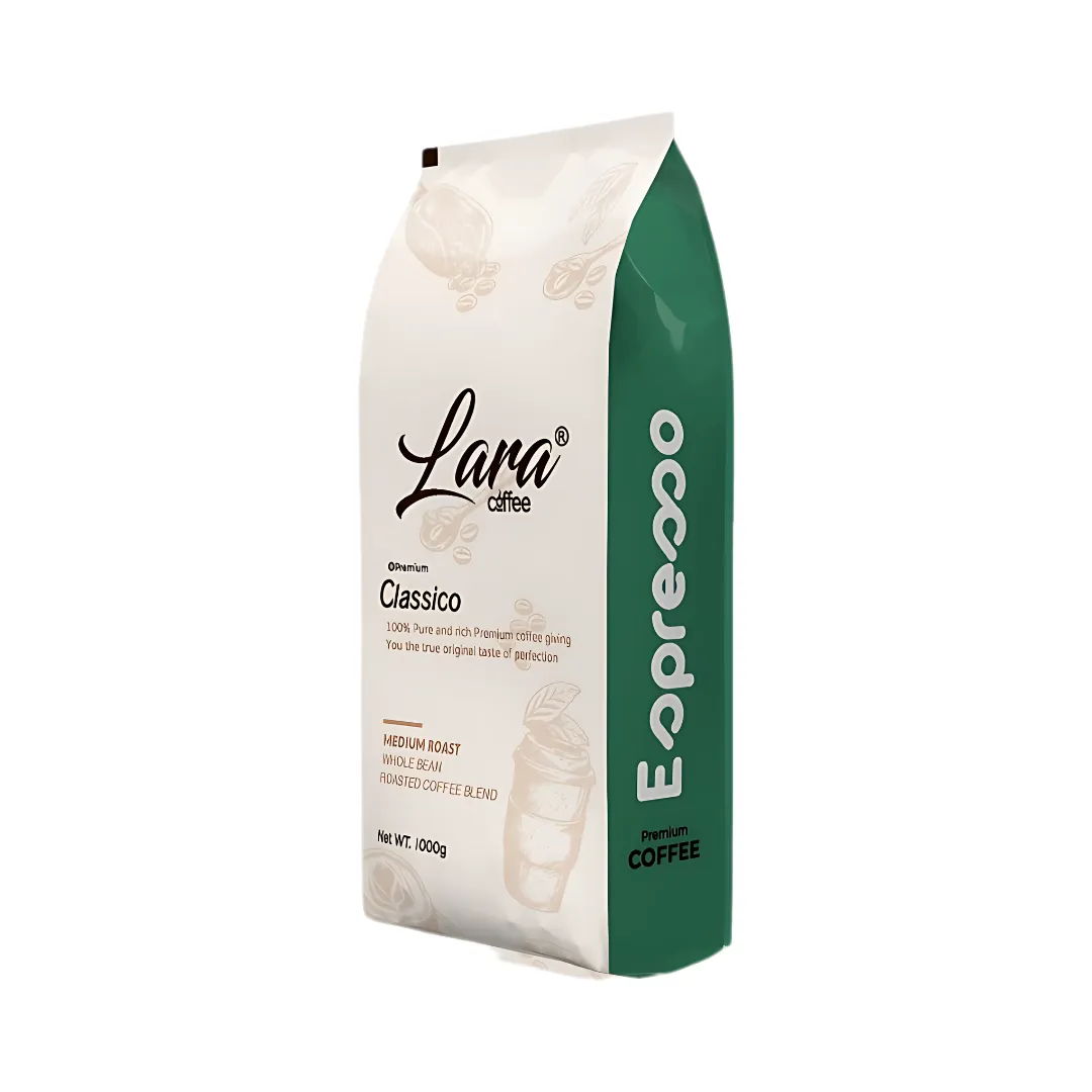 لارا كوفي كلاسيكو تتكون من 5٪ حبوب قهوة أرابيكا، تحميص متوسط.