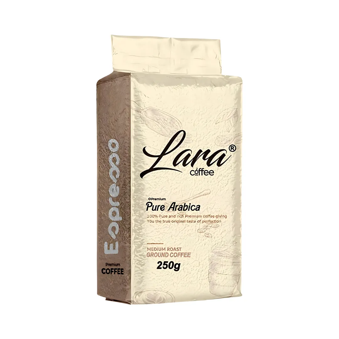 لارا كوفي حبوب مطحونة متوسطة التحميص، مختارة من أنقى أنواع أرابيكا، 100% أرابيكا.